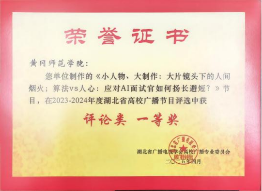 湖北省高校广播节目评选范围涵盖新闻、文艺、评论等三大类,每校每节目类型限报 1 项作品,总数不超过 3 项。据统计,此次共有华中科技大学、华中师范大学、中国地质大学(武汉)等省内27所高校共计100余件广播作品参加评选。我校选送的三件节目作品全部获奖,其中《戏脉承音》获文艺类一等奖、《小人物、大制作:大片镜头下的人间烟火;算法vs人心:应对AI面试官如何扬长避短?》获评论类一等奖、《国家大事早知道》获新闻类三等奖。